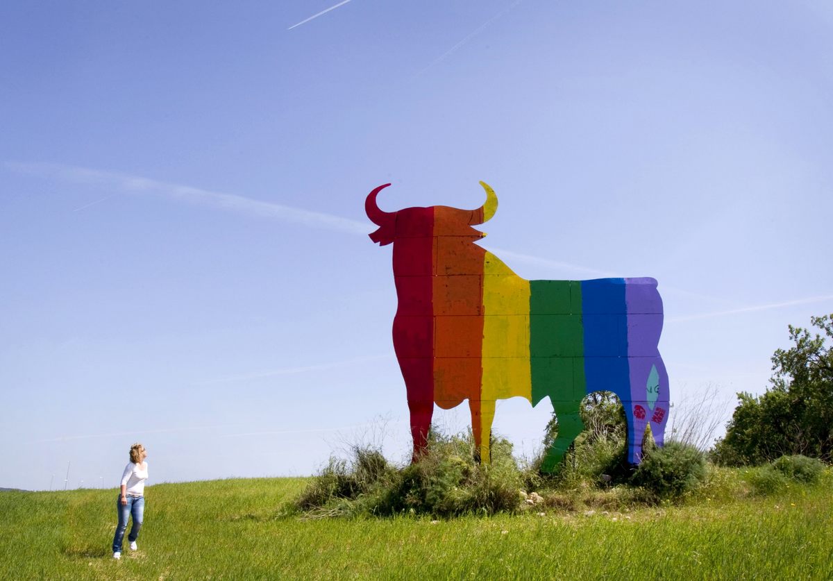Until the 1990s, when billboards were banned in Spain, these bulls were painted with the name of Veterano Osborne brandy. The company removed the words and successfully fought to have the enormous bulls considered art. Ken Welsh/UCG/Universal Images Group via Getty Images
